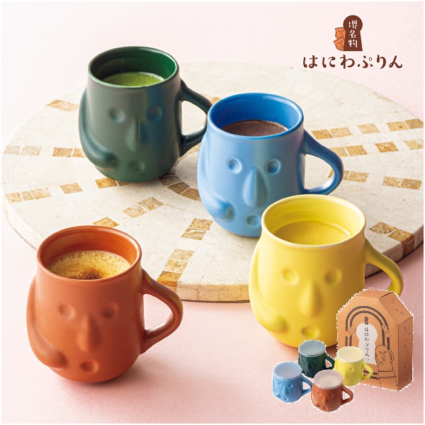古墳の町である大阪・堺で生まれた名物プリン。定番カスタードをはじめ、人気のチョコ・抹茶・かぼちゃが入ったはにわぷりん カルテットは見て楽しい、食べくらべておいしいセットです。