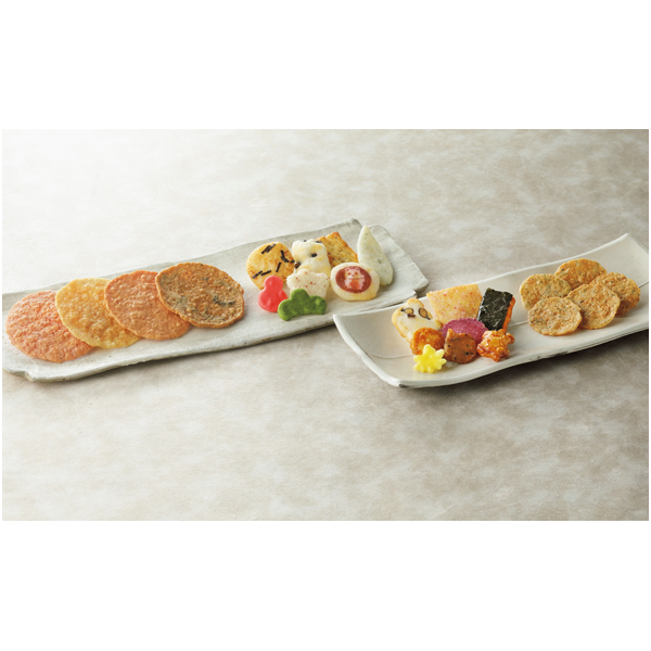 素材の旨みを活かした海鮮せんべいと、国産米を使用したひと口米菓の詰合せです。
