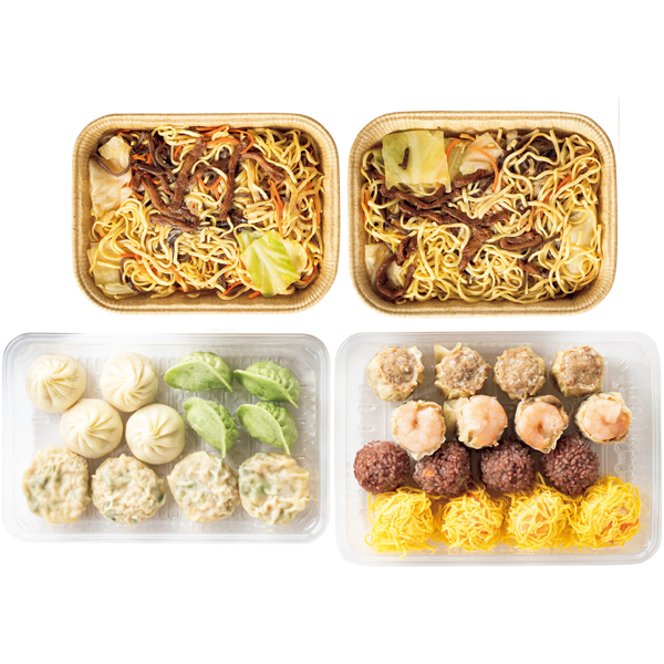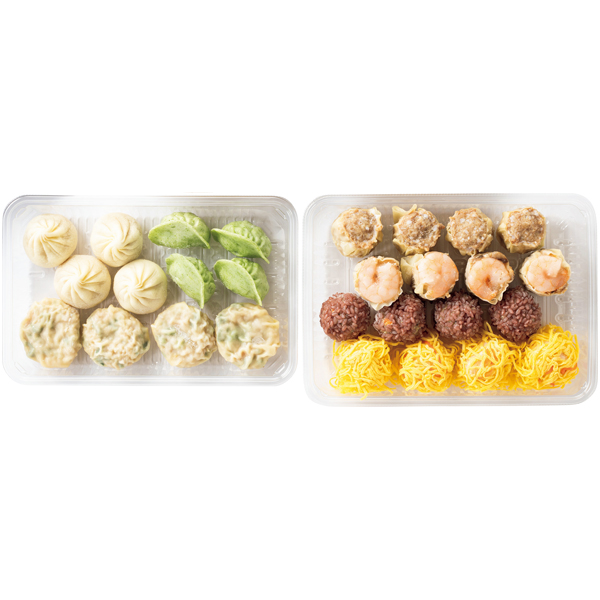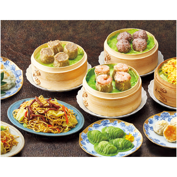 肉焼売4、海老焼売4、紫もち米焼売4、海鮮団子4、海老ニラ焼き饅頭4、翡翠蒸し餃子4、上海焼き小籠包4、上海焼きそば2