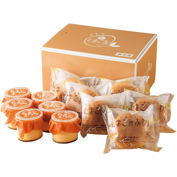 卵や蔵王産牛乳など素材の持ち味を活かした、プリンとスフレ2種の詰合せをお楽しみください。