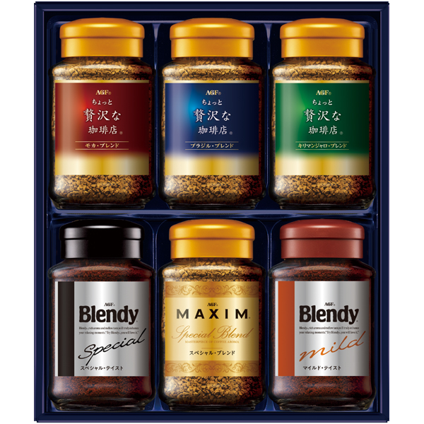 「ちょっと贅沢な珈琲店」「マキシム」と「ブレンディ」をセットにしたインスタントコーヒーギフトです。