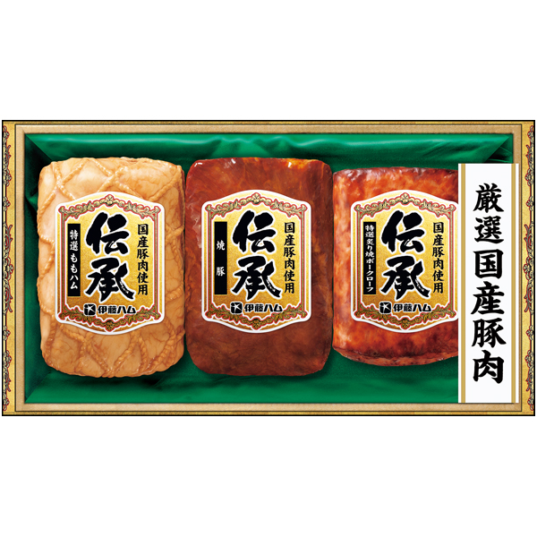 「伝承」は厳選した国産豚肉を原料とし、創業者「伊藤傳三」のハムづくりの想いを込めました。
