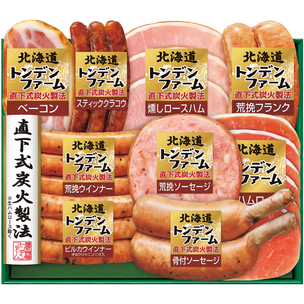 ベーコン50g、スティッククラコウ40g、燻しロースハム60g、荒挽フランク100g、荒挽ウインナー90g、ピルカウインナー90g、荒挽ソーセージ70g、骨付ソーセージ120g、生ハムロース40g