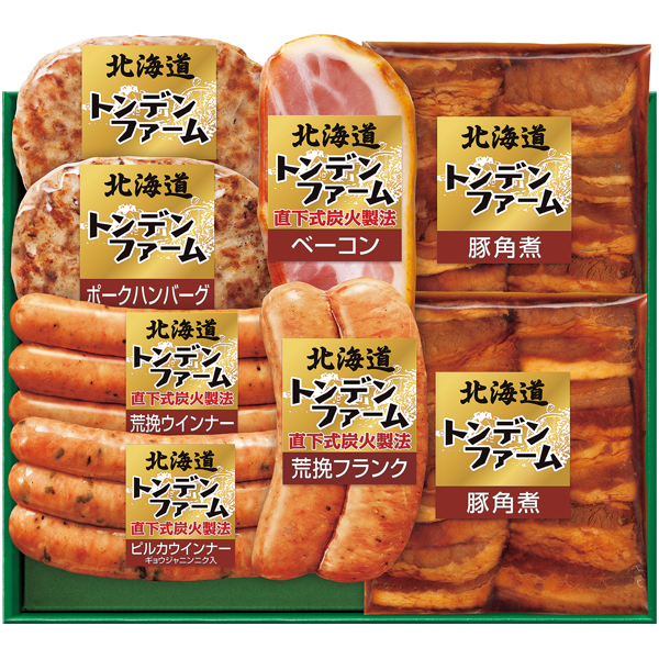 豚角煮120g×2、ポークハンバーグ90g×2、ベーコン50g、荒挽ウインナー90g、ピルカウインナー90g、荒挽フランク100g