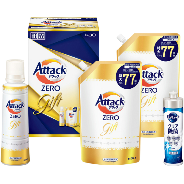 アタックZERO(本体580g、詰替用770g×2、キュキュットクリア除菌220ml)