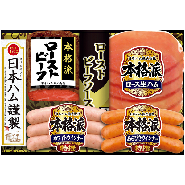 ローストビーフ140g、ローストビーフソース40g、ロース生ハム27g、特撰あらびきウインナー66g、特撰ホワイトウインナー66g