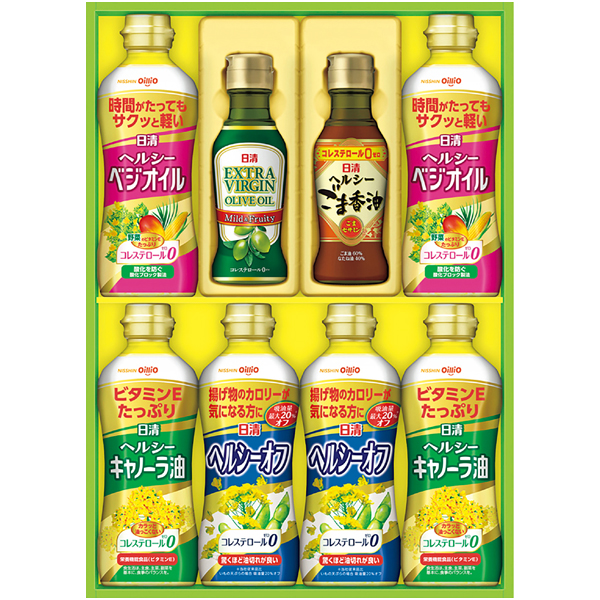 ヘルシーベジオイル350g×2、ヘルシーキャノーラ油350g×2、ヘルシーオフ350g×2、EXVオリーブオイル145g、ヘルシーごま香油145g