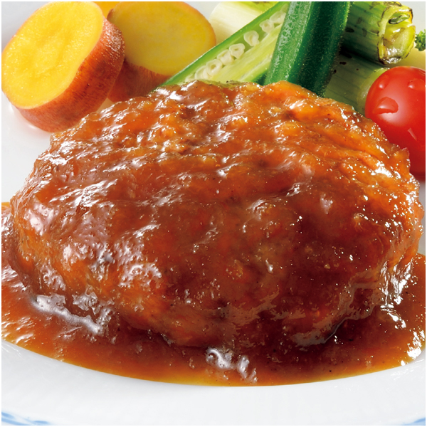 さつまビーフと霧島黒豚を素材に、和洋2種類のソースで煮込んだハンバーグです。
