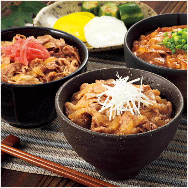 黒豚丼の具(和風、蒲焼風)、和牛丼の具(和風)3種食べくらべセット