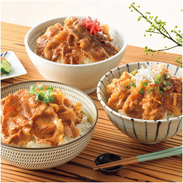 九州産黒豚2種の部位を、ご飯によく合う3種のたれでつけています。フライパンで簡単調理でお召し上がりください。