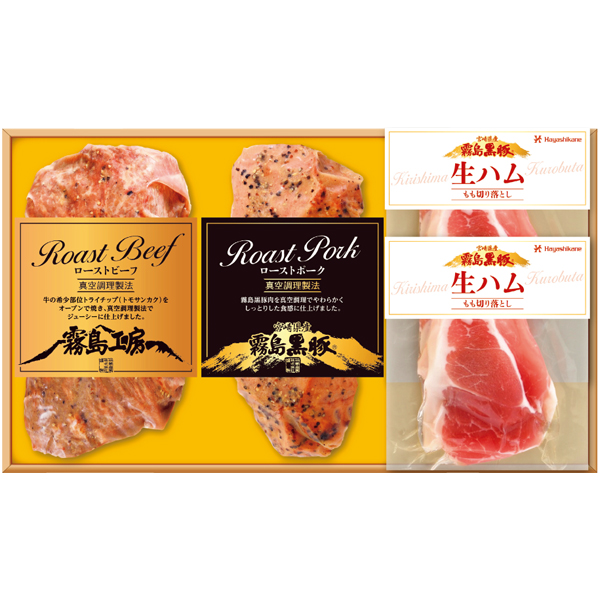 北海道産黒牛を使用したローストビーフと宮崎県認証ブランド「霧島黒豚」を使用したローストポーク・生ハムのセットです。