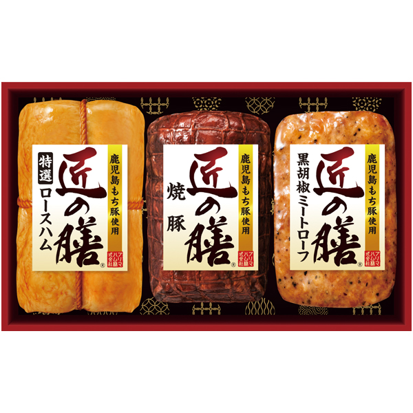 特選ロースハム350g、焼豚200g、黒胡椒ミートローフ170g