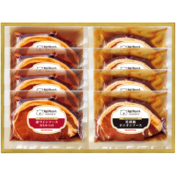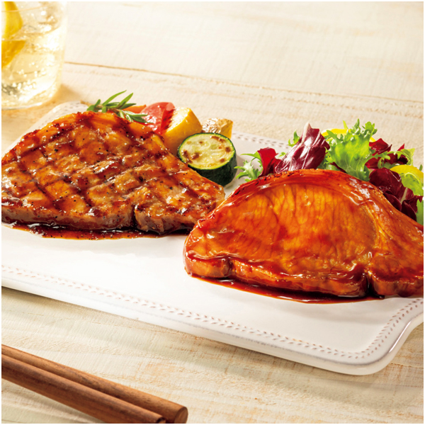 豚ロース肉赤ワインソースはちみつ入り113g×4、豚ロース肉黒胡椒オニオンソース113g×4(各原料:肉/カナダ産)