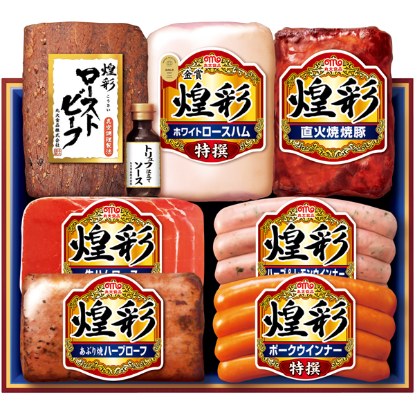 ローストビーフ(原料:肉/オーストラリア又はアメリカ又はカナダ産)180g、トリュフ仕立てソース90ml、特撰ホワイトロースハム350g、直火焼焼豚170g、あぶり焼ハーブローフ170g、生ハムロース36g、特撰ポークウインナー2種 各80g