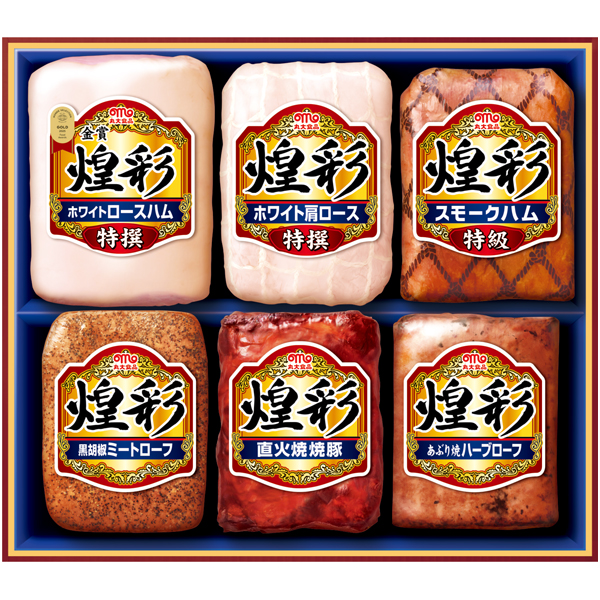 特撰ホワイトロースハム350g、特撰ホワイト肩ロース170g、特級スモークハム180g、黒胡椒ミートローフ160g、直火焼焼豚170g、あぶり焼ハーブローフ170g