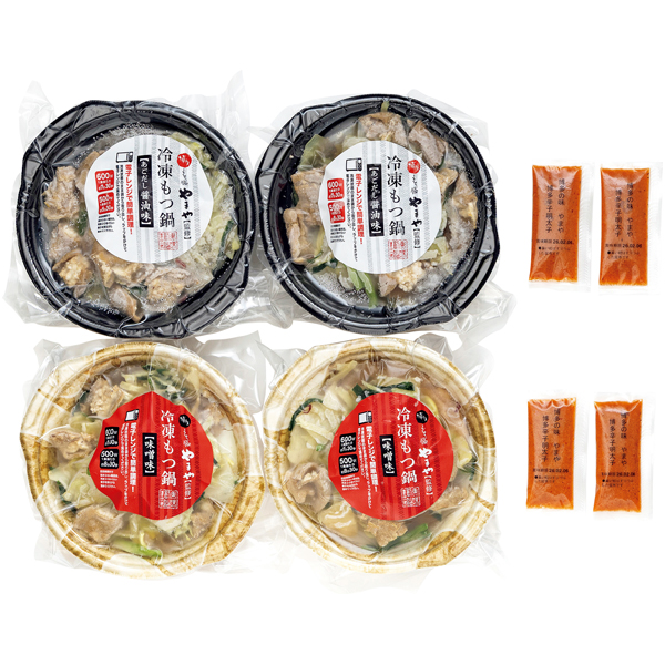 やまや 辛子明太子付、博多もつ鍋2種 4食セット 6802