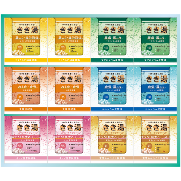 マグネシウム炭酸湯・カリウム芒硝炭酸湯・クレイ重曹炭酸湯・食塩炭酸湯・重曹カルシウム炭酸湯・カルシウム炭酸湯 各30g×4