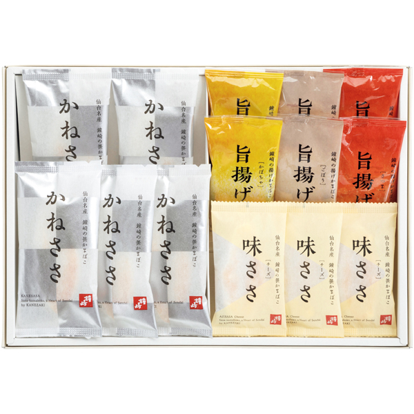 かねささ45g×5、味ささ(チーズ)25g×3、旨揚げ(さつま・ごぼう・かぼちゃ)各40g×2