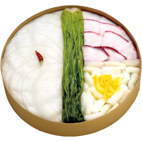 千枚漬150g、壬生菜漬70g、刻み赤かぶら140g、柚子おとし140g