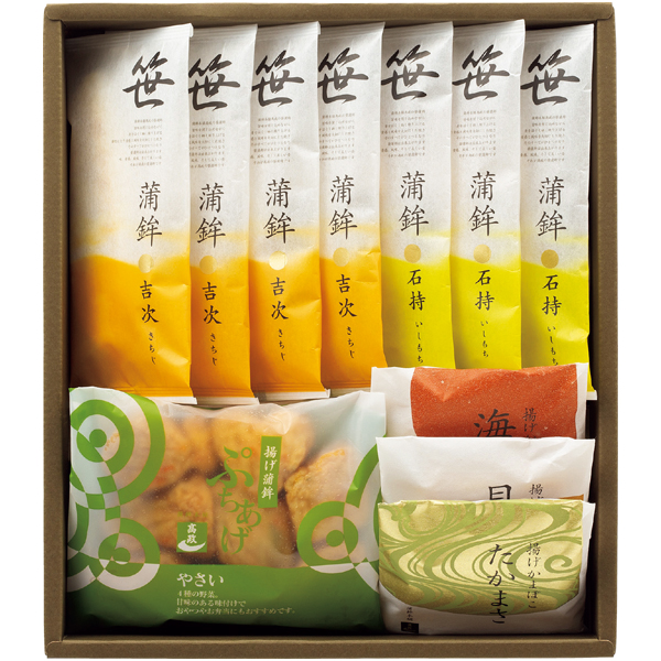 笹かまぼこ(吉次4、石持3)、揚げかまぼこ(たかまさ、海老、貝柱)、ぷちあげやさい