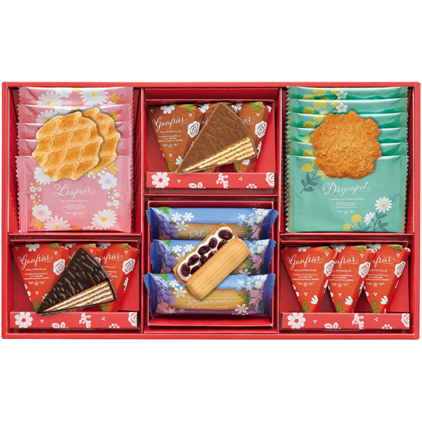 代表商品「レスポワール」と人気のドリカポ、ゴーフレール、シモサンの詰合せです。