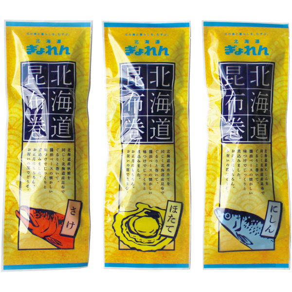 さけ昆布巻、ほたて昆布巻、にしん昆布巻