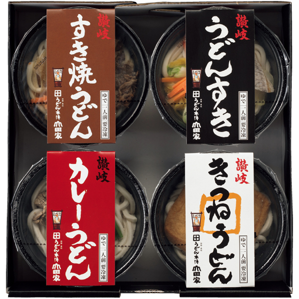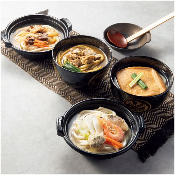 讃岐すき焼うどん500g、讃岐カレーうどん480g、讃岐うどんすき520g、讃岐きつねうどん480g