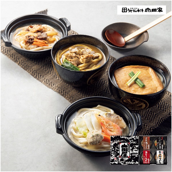 国産牛肉を使ったすき焼うどん、まろやかな辛さのカレーうどんなど4種の味を詰合せ。