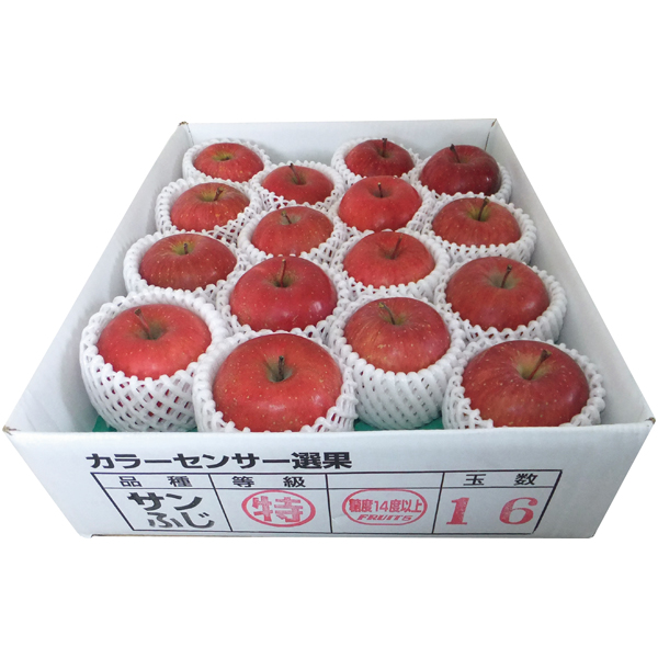 収穫したりんごをセンサー選別機能が付いた選果機に通し、糖度14度以上が確認できたりんごをお届けしています。
