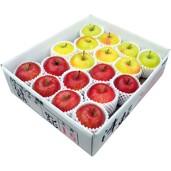 センサー選別で糖度14度以上が確認できたサンふじと、生産量が少なく希少な黄緑色のりんご、ぐんま名月をセットにしてお届けしています。