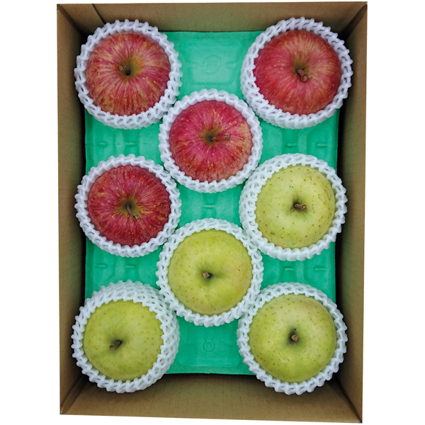 歯ごたえがあるサンふじと甘さが際立つ王林のセットです。