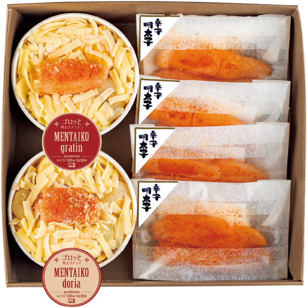 明太子グラタン215g、明太子ドリア240g、無着色辛子明太子70g×4 計6