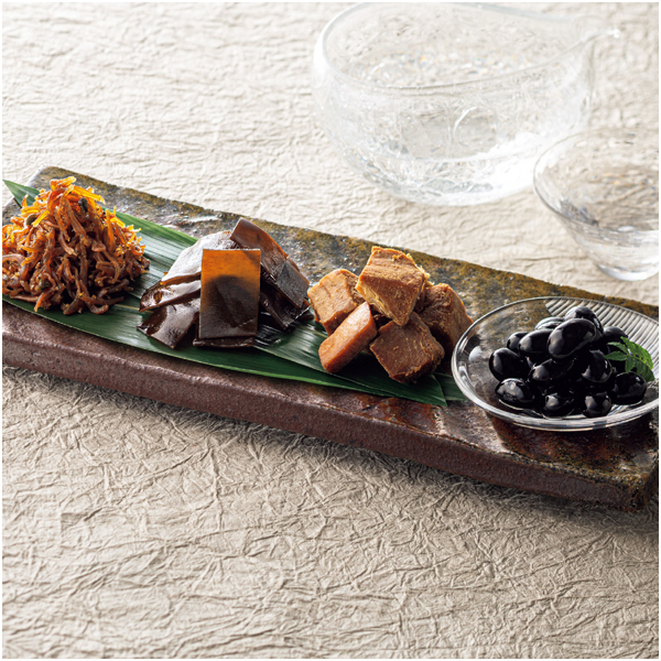丹波産の黒豆煮豆と、お節にも役立つ佃煮の詰合せです。