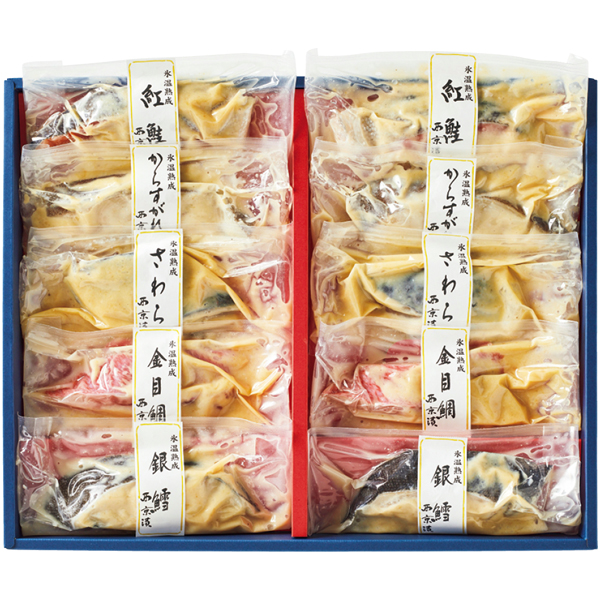 さわら西京漬70g、紅鮭西京漬70g、銀だら西京漬70g、金目鯛西京漬70g、からすがれい西京漬70g 各2 計10(個包装)