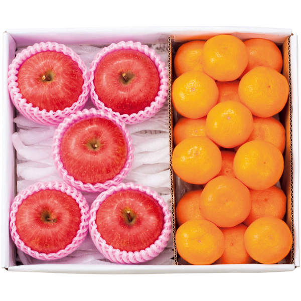 甘さ、酸味、歯ごたえ全てそろったサンふじりんごと、愛媛県産「真穴」又は和歌山県産「有田」みかんの詰合せ。