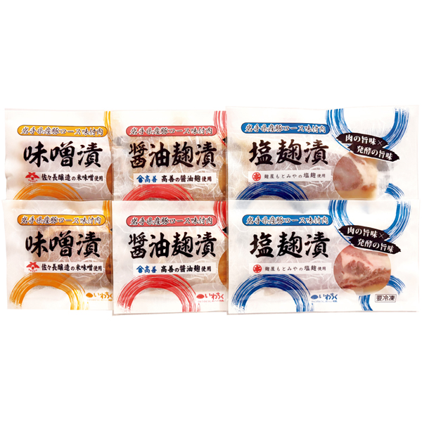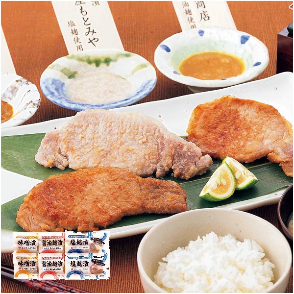 豚肉ロース味噌漬け・豚肉ロース塩麹漬け・豚肉ロース醤油麹漬け 各100g×2(各原料:肉/岩手県産)