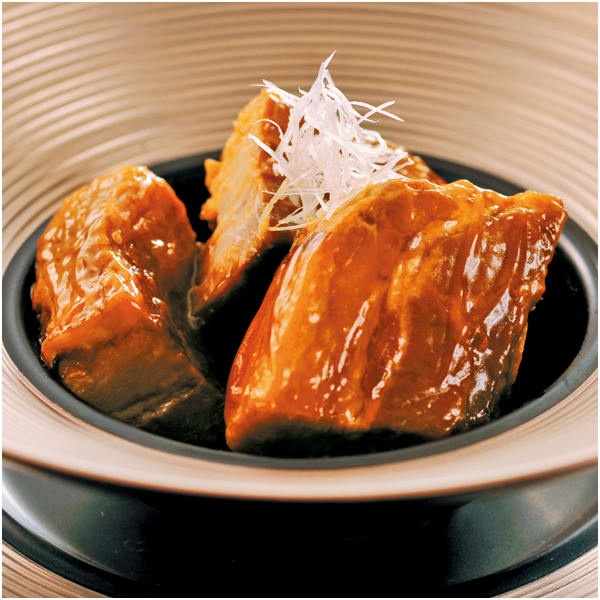 ローマイヤの伝統製法でじっくり柔らかく煮込み、りんご酢を加えたオリジナル醤油だれで味付けしました。あとあじがさっぱりとした豚角煮です。