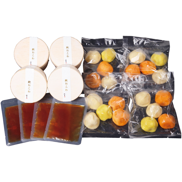 国産あわびおこわ120g×4、帆立水餃子100g(5個)×4、あわびだし入り中華スープ30g×4