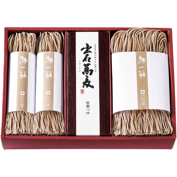 つるつるとのどごしの良い食感をお楽しみいただける出石半なまそば。つゆとセットでお届けいたします。