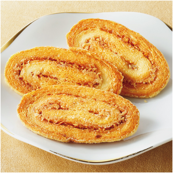 クラッシュしたアーモンドを混ぜ込み、香ばしく焼き上げたパイの食感と発酵バターの風味をお楽しみください。