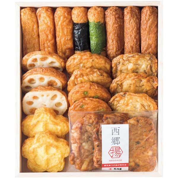 鹿児島の英雄西郷隆盛に因んだ「西郷揚げ」、奄美大島産もずくを使ったさつま揚げ入りのセットです。