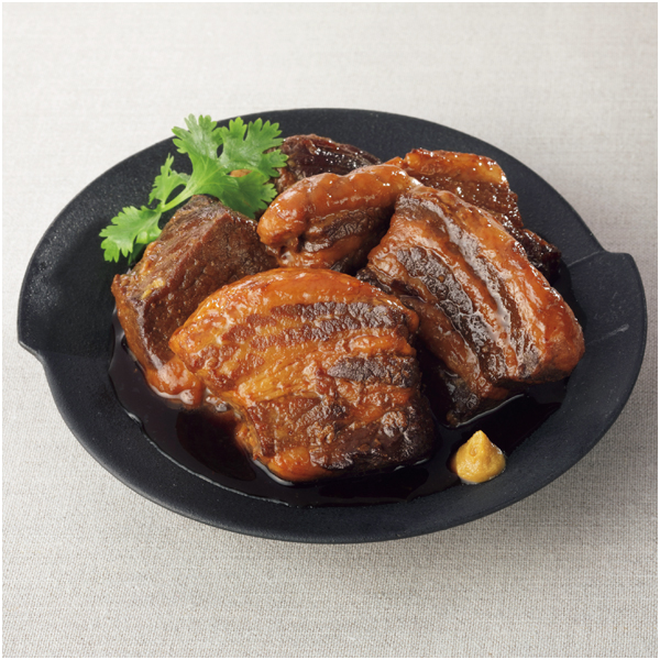 鹿児島県産黒豚ばら肉を醤油ベースのたれに加工黒糖と焼酎を加えじっくり煮込んでやわらかく仕上げています。