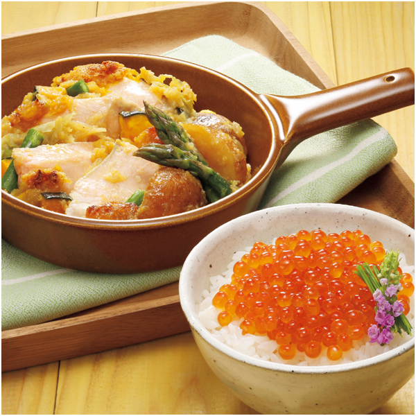北海道の郷土料理「鮭のチャンチャン焼き」をレンジで簡単にお召上がりいただける手軽なパックとなりました。特製たれで漬け込んだいくら醤油漬と合わせた、鮭の会社ならではのセットです。