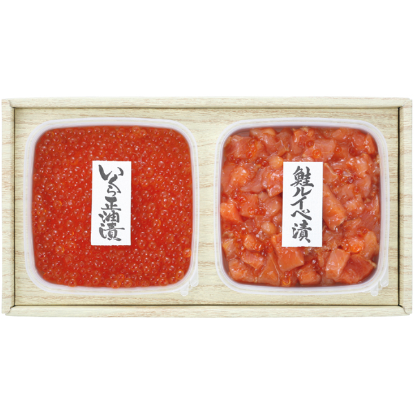 佐藤水産人気の「鮭ルイベ漬」と特製「いくら醤油漬」の、北海道天然鮭の親子セットです。