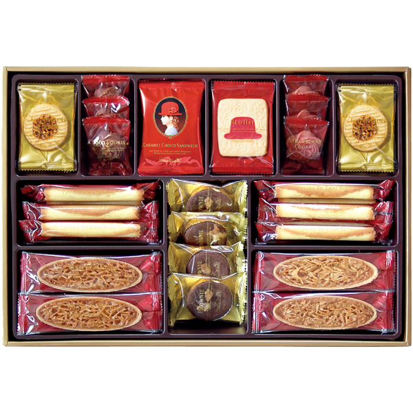 バニラアーモンド12、ラングドシャロール10、フロランタンクッキー8、レッドハット・ブラウニー 各4、ストロベリークッキー・チョコクッキー・キャラメルショコラサンド 各3