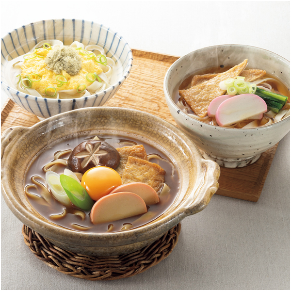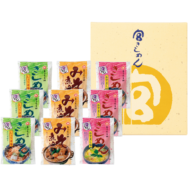 定番のしょうゆ味とみそ煮込、おすまし味のきしめんの3種を詰合せました。