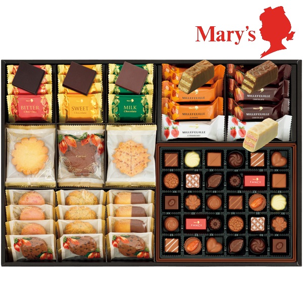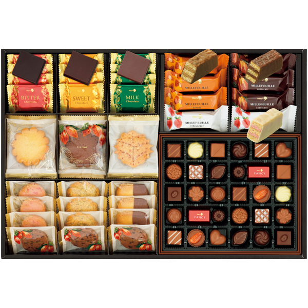 ファンシーチョコレート30、ミルフィーユ3種8、プレーンチョコレート3種12、クッキー7種18