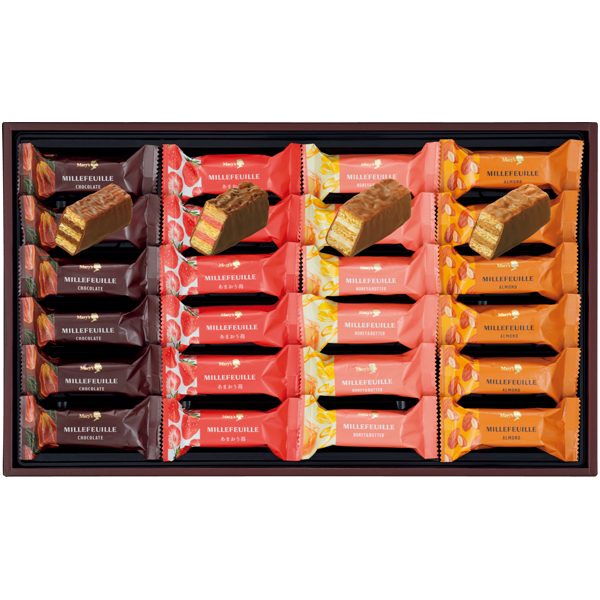 ミルフィーユ24(チョコレート6、アーモンド6、あまおう苺6、ハニーバター風味6)