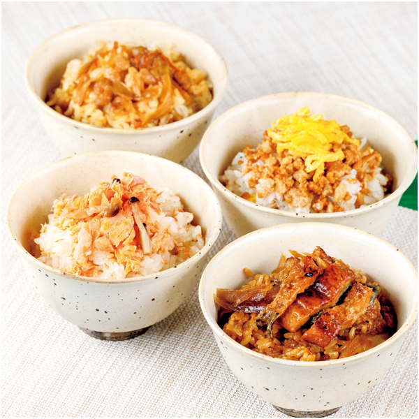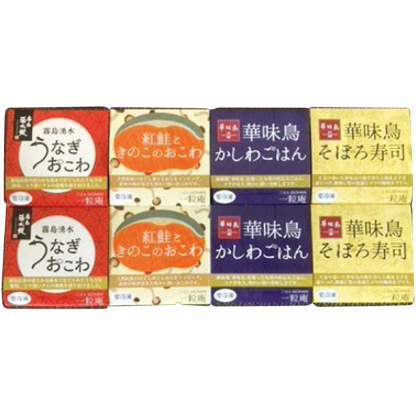 うなぎおこわ・紅鮭ときのこのおこわ・華味鳥のそぼろ寿司・華味鳥のかしわごはん 各125g×2