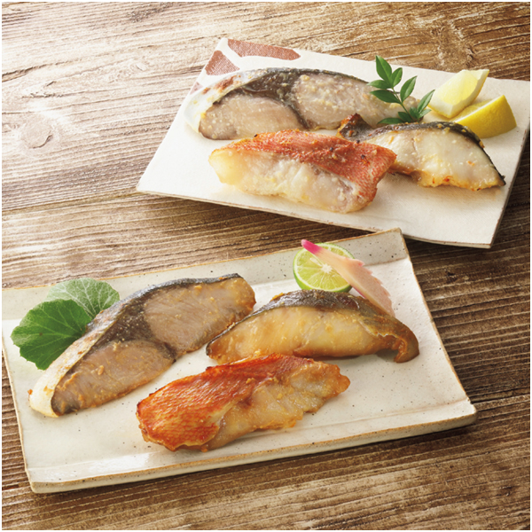 ぶり西京味噌漬60g×2切、赤魚西京味噌漬60g×2切、銀鱈西京味噌漬50g×2切、ぶり仙台味噌漬60g×2切、赤魚仙台味噌漬60g×2切、銀鱈仙台味噌漬50g×2切